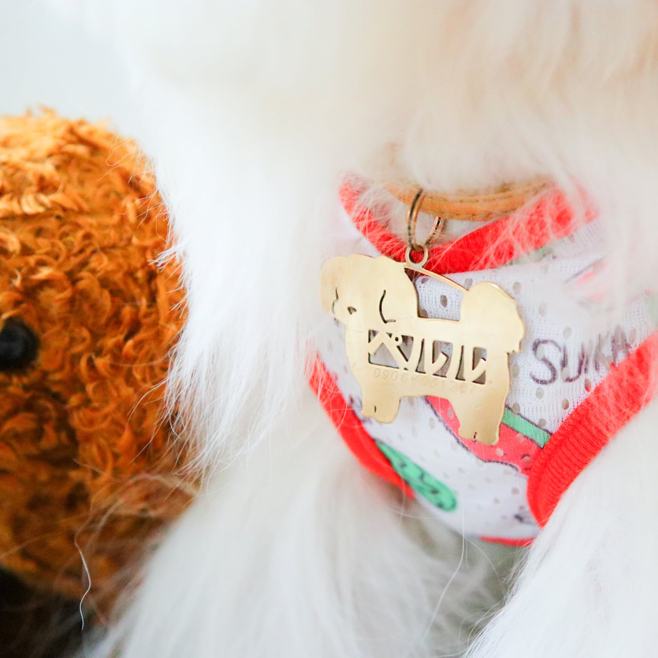 愛犬のためのオーダーメイド迷子札。お名前や犬種デザインをもとに、ひとつひとつ手作業で制作しています。