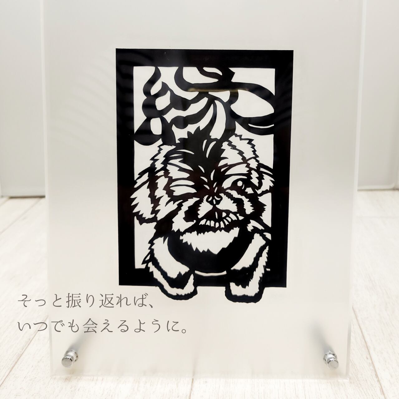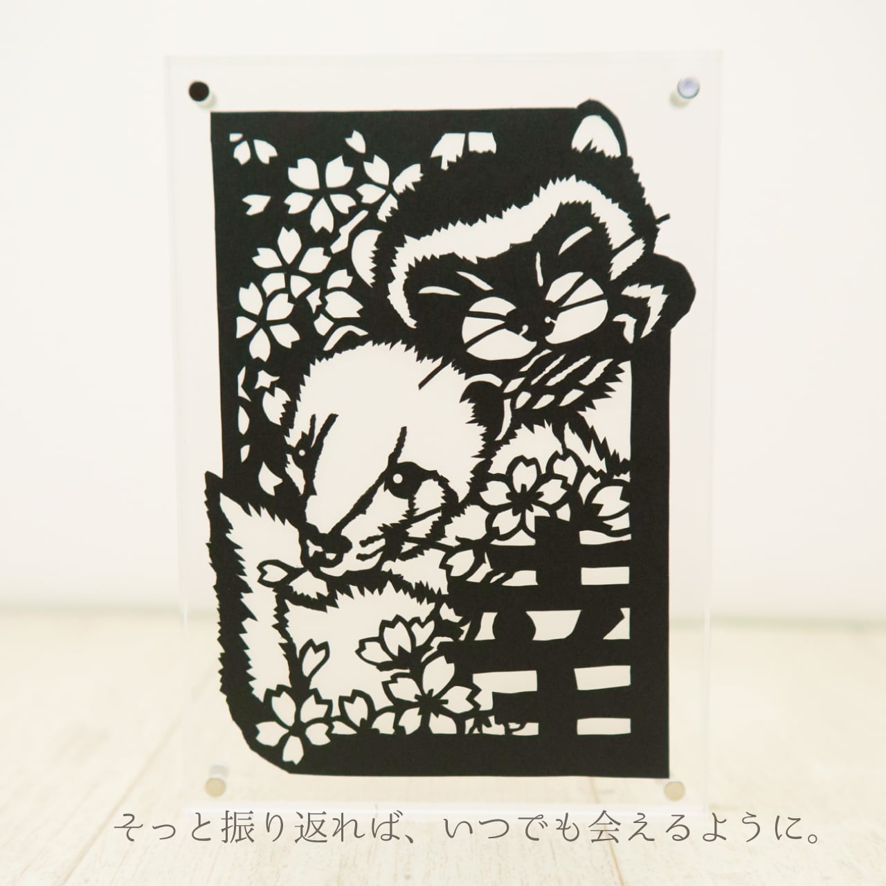 お写真をもとに、面影やその子らしさを大切にしながら一点一点デザインを起こし、切り絵作品としてお仕立てします。